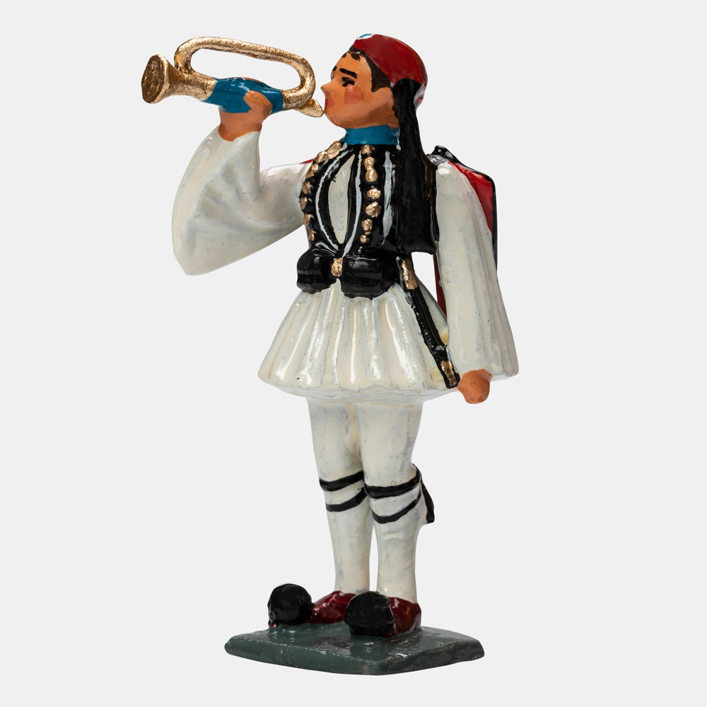 Μολυβένιο επιχρωματισμένο ομοίωμα που αποδίδει εύζωνα σαλπιγκτή της Προεδρικής Φρουράς.
