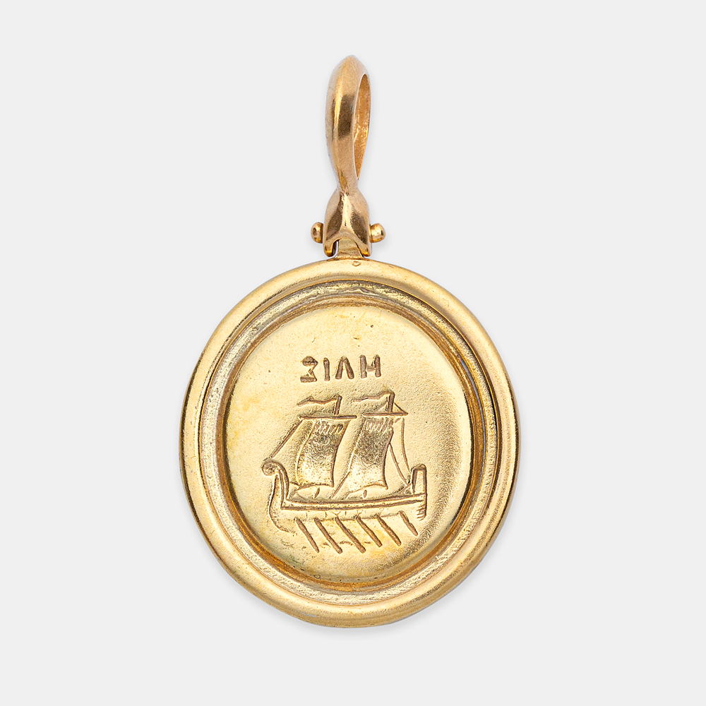 A pendant depicting a trireme and the inscription “ELIS”. From the ring of Chrysanthos G. Sisinis, hero of the Greek War of Independence.
