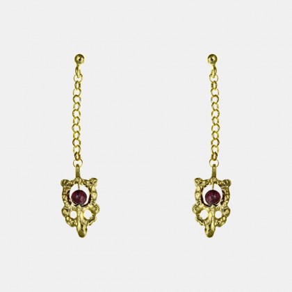 Σκουλαρίκια με κρεμασίδια και ημιπολύτιμες πέτρες, σύμβολα προστασίας, εμπνευσμένα από τη νυφιάτικη κορώνα του Πωγωνίου. Βόρειος Ήπειρος, 19ος αι.